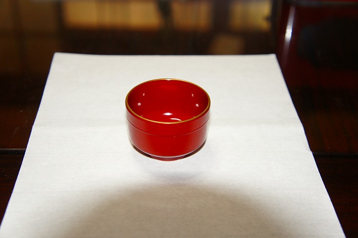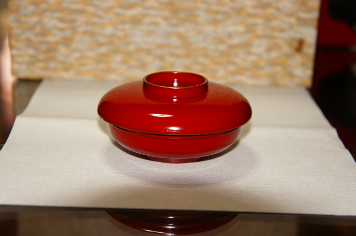 また下の写真のように、「壺椀」を中央に「高皿」を右上に置くのが「宮中流」です。