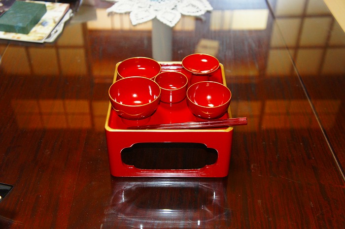 ※蓋をする場合は、写真のように、「一番小さい蓋」を「飯椀」、「椀よりはみ出る一番大きな蓋」を「平椀」となるように被せて下さい。