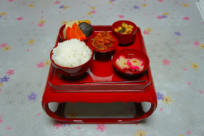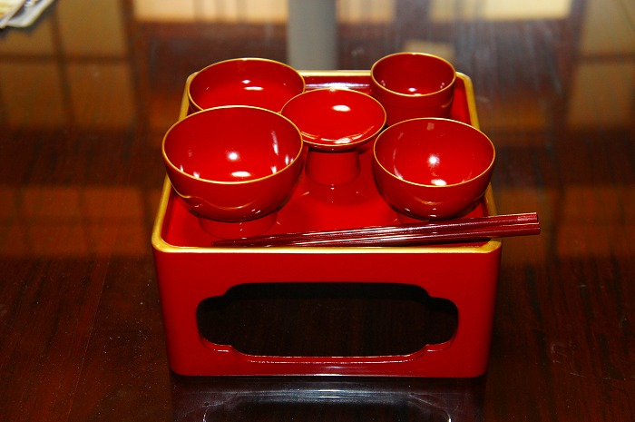 ※宮中流の置き方では、高皿に「酢の物」も盛り付けます。宮中流については、下記の「置き方」参照。