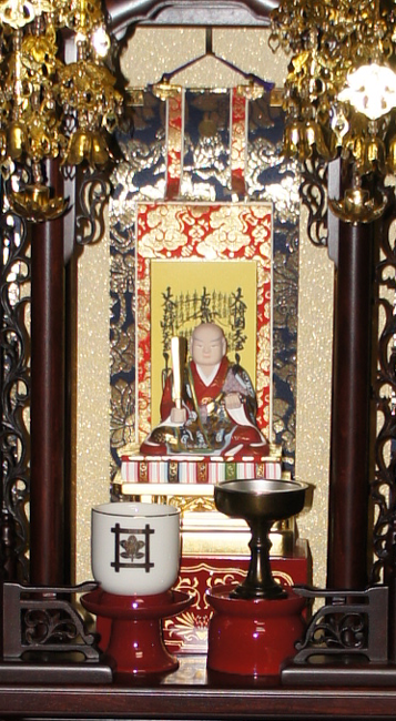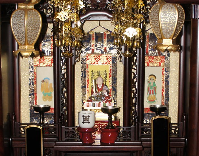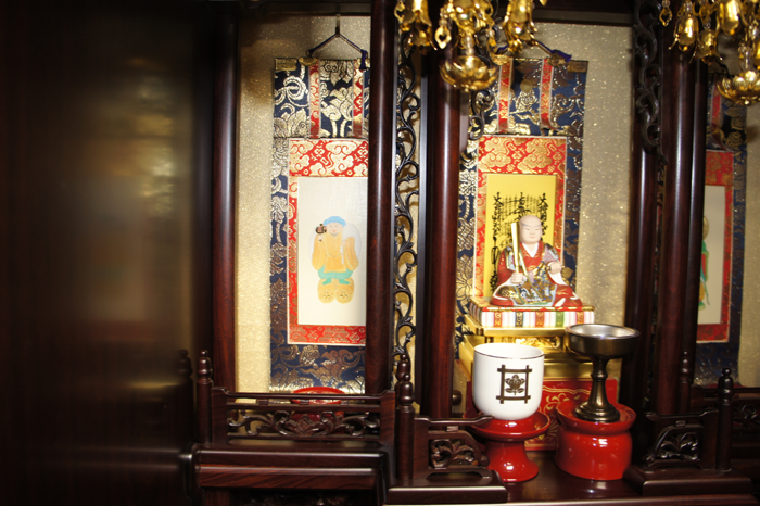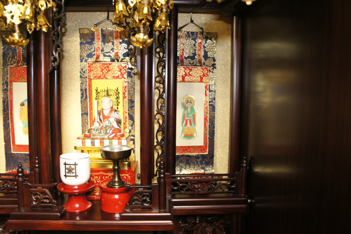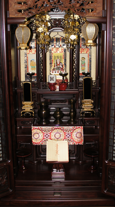 これらは、お仏壇の最上段(須弥壇)の上方、宮殿(くうでん)にお祀りします。