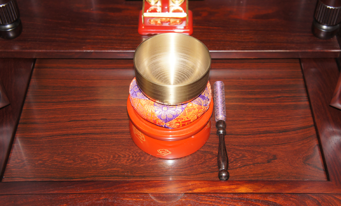⑪のお鈴は、お仏壇に置くスペースが無い、またはそもそもお仏壇に置くよりも使いやすいという理由で、⑩経机の上に置かれる場合が多いです。