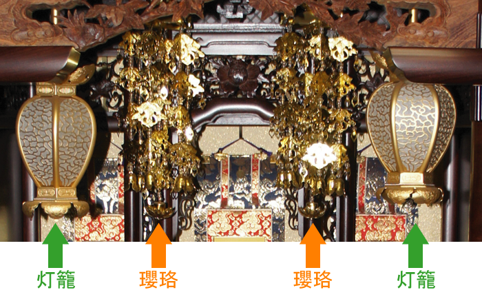 ⑦瓔珞(ようらく)、灯篭(とうろう)、打敷(うちしき)など