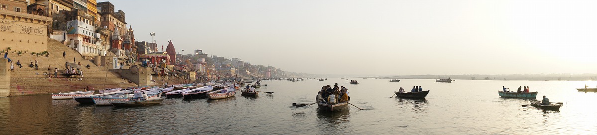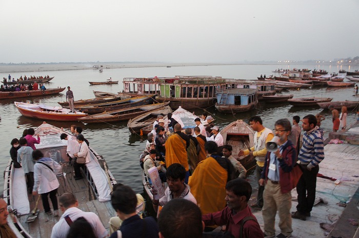 法要後は、ゆったりと進む舟の上から、沐浴の光景に代表される朝のガート見物をしました。