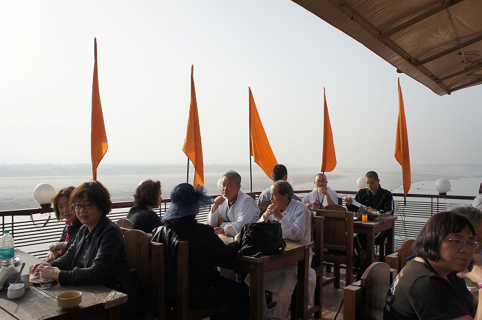 という思想がヒンドゥー教にはあります。だからこそ「母なるガンガー」として崇めます。さんさんと降り注ぐ太陽の下、ガンジス河のパノラマビューを目の前にして、その思想に思いを巡らしながら、まったりとコーヒーを飲んでくつろぎました。