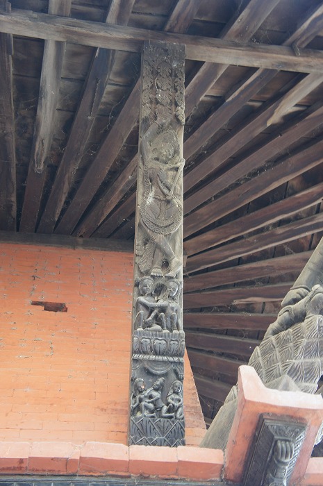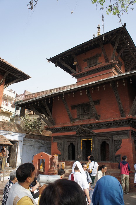 この寺院は、ネパールの寺院で、赤レンガの壁と細かい彫刻が施された柱が印象的でした。