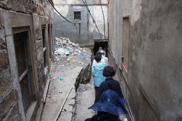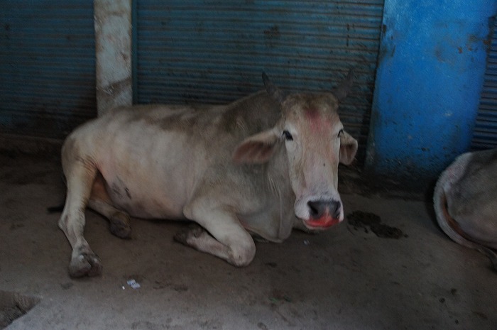 牛の糞やゴミ、がれきが所々に落ちており、階段を上ったり降りたり、地下道に入ったりして進んでいく道は、まるで迷路のようでした。