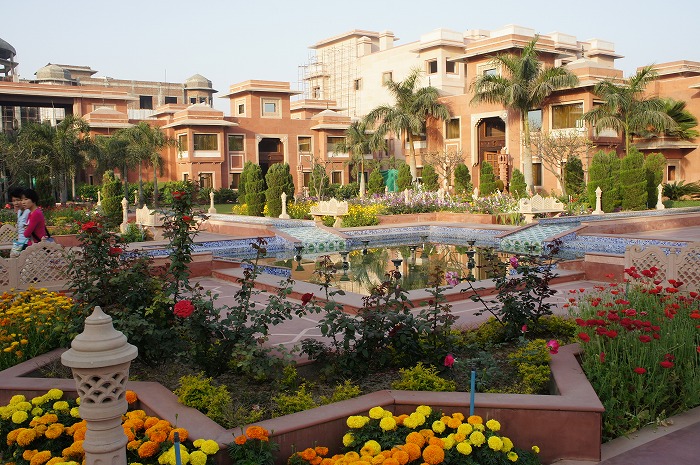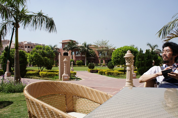 朝食へ行く途中、昨晩暗くて見えなかったホテルの全容が見えて、思わずカメラを構えてしまいました。まさしくインドの高級リゾート。映画に出てくるような場所でした。