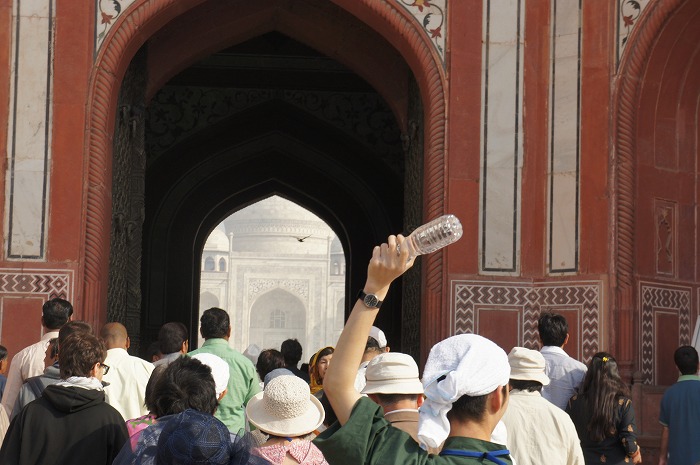 皆さんが検査を終えるのを待って、いざメインゲートへ。昂まる気持ちを押さえてメインゲートをくぐろうとしたとき、その奥にタージマハル本廟が目に飛び込んできました。その瞬間、ゾクゾクッと久々に鳥肌が立ちました。