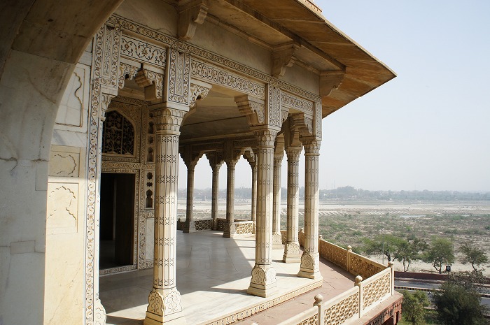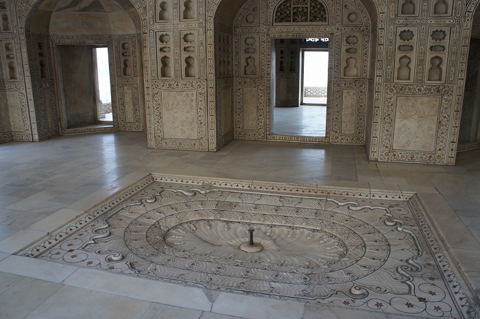 そして下の写真が、シャー・ジャハーンが幽閉されていた場所、ムサンマン・ブルジュです。ここも総大理石で、当時では珍しい噴水まで備わっている建物です。いくら幽閉されたとはいえ、さすがは王様。この豪華な建物で、晩年の7年を過ごされたそうです。