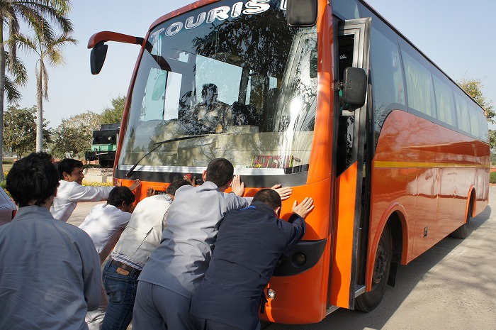 トイレ休憩を終え出発という時に、バスがエンスト…。「押し掛け」をするというインドらしいハプニングも最後に経験できました。