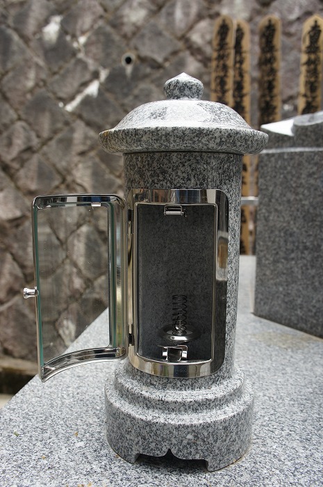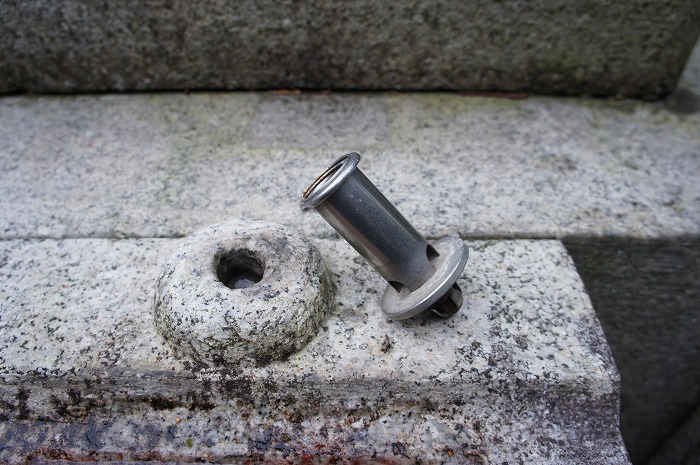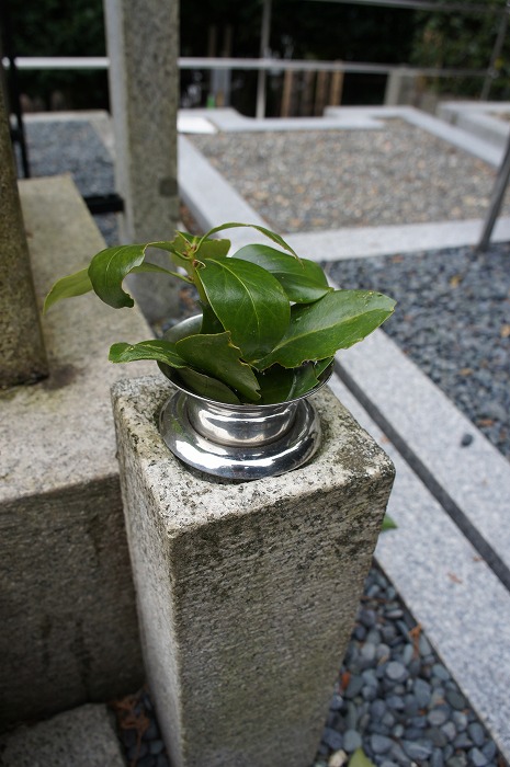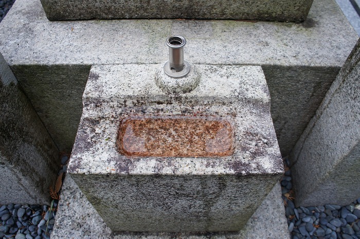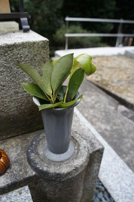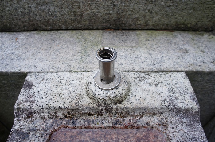 墓石の前に一対備え付けます。現在では、墓石とセットで用意してもらえますが、昔の個人墓などでは、竹筒やそれを模したプラスチック製の花筒を立てていました。