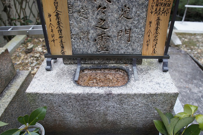 仏様、ご先祖様に水を供養するところです。直接墓石に窪みを掘る場合と、窪みを掘った石を墓石の前に設置する場合があります。どちらでも構いません。別に設置する場合は、その石に「家紋」を刻まれることが多いようです。