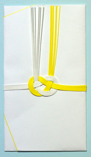 《写真は、黄白水引(印刷)の結び切り》